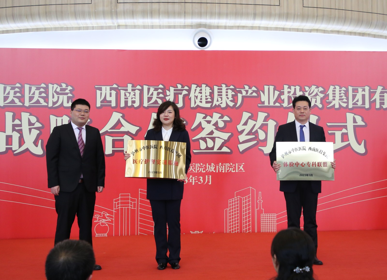 儀式上,雙方簽訂了戰略合作協議,對合作的瀘州市中醫醫院·西南醫投集團醫療護理實訓基地、體檢中心專科聯盟,瀘州市中醫醫院·瀘州醫療器械職業學院臨床技能中心進行了授牌。