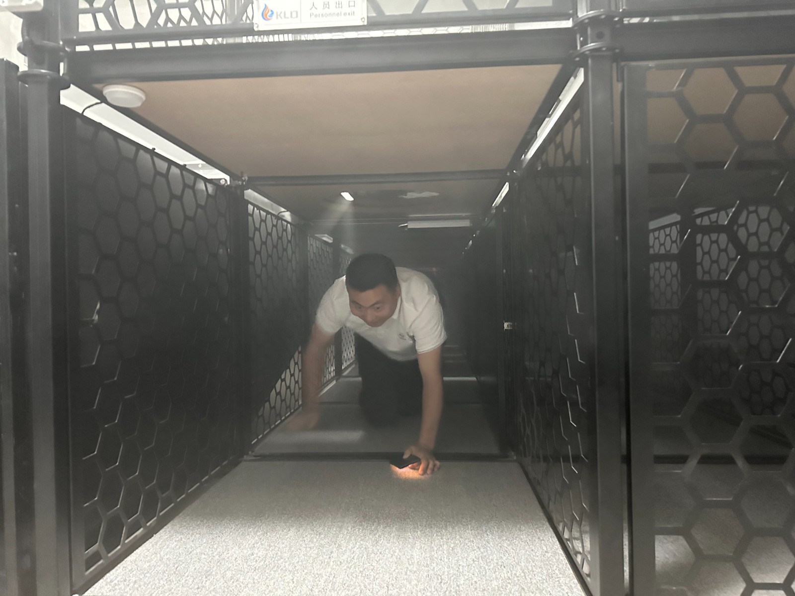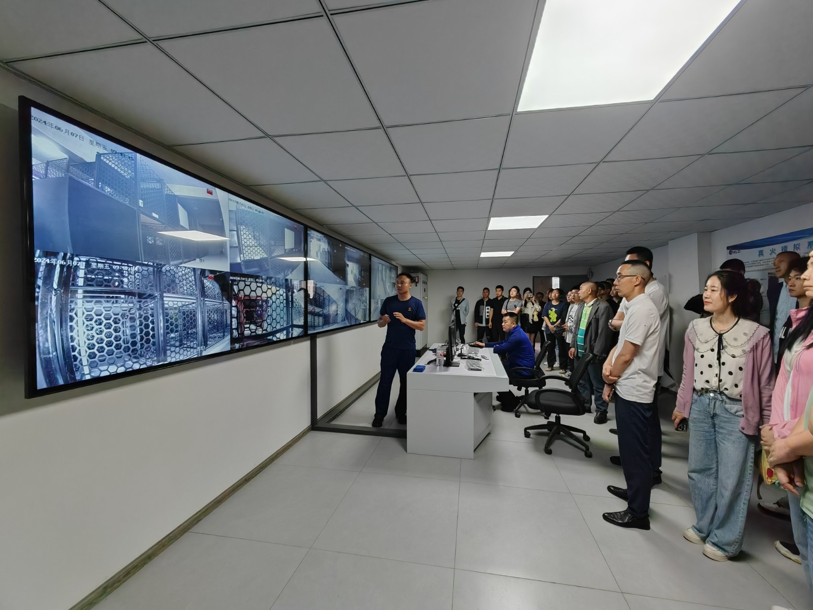 大家參觀了基地的遠(yuǎn)程供水車(chē)、登高車(chē)與泡沫滅火車(chē)等大型救援和后勤保障裝備,隨后來(lái)到煙熱實(shí)戰(zhàn)訓(xùn)練控制室,學(xué)習(xí)了建筑火災(zāi)高溫?zé)煔馊紵L(fēng)險(xiǎn)的辨識(shí)與預(yù)判以及如何在煙火環(huán)境下進(jìn)行自救、互救。最后在煙熱模擬訓(xùn)練室進(jìn)行了一場(chǎng)濃煙和高熱環(huán)境下的逃生訓(xùn)練。